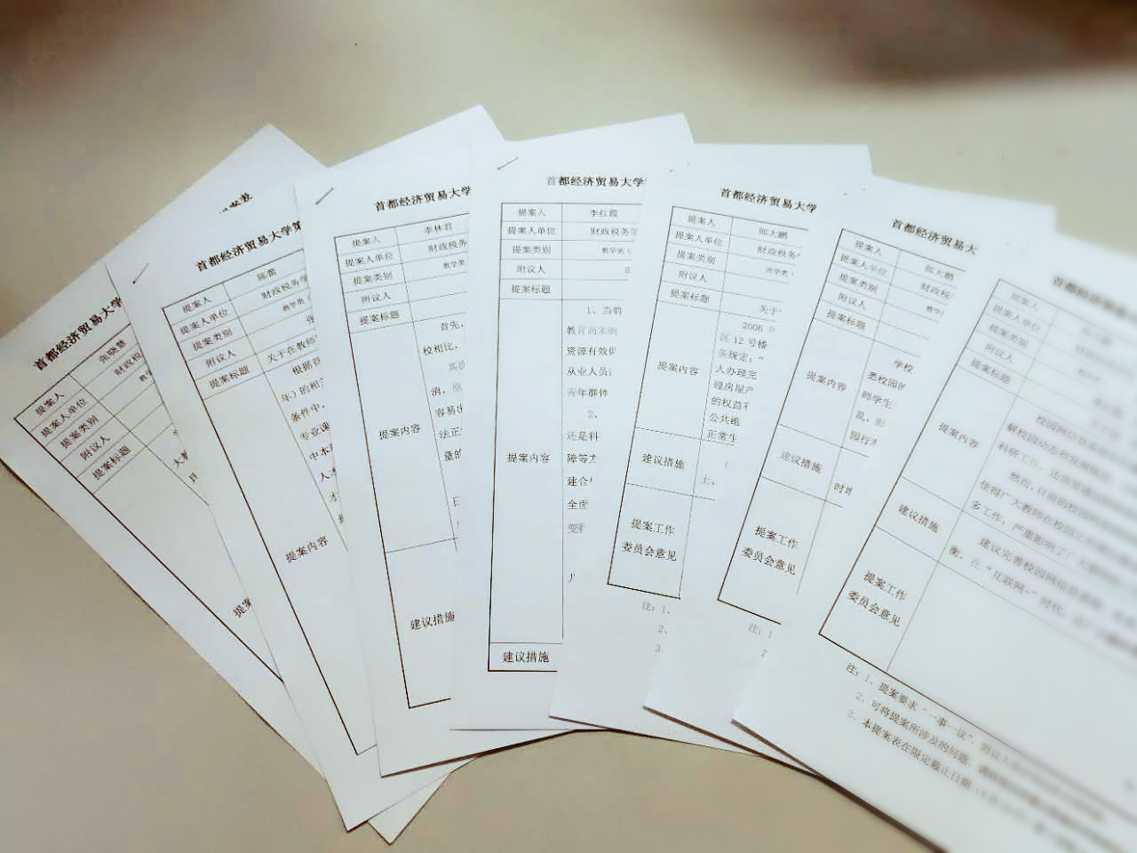 本次提案征集工作围绕学校中心工作及教职工普遍关心的问题,在广泛听取意见的基础上,就学校改革发展、内部管理、教学科研、生活福利以及涉及教职工切身利益事项等方面提出意见建议。在近一个月(2017年3月中旬-4月上旬)的时间里,李红霞、郎大鹏、陈蕾、张晓慧、李林君等各位教代会代表认真履行职责,针对教职工反映的意见建议,积极开展调查研究和综合提出建议措施,并将具有代表性的意见建议形成7份提案提交学校,力求为学校的建设发展积极建言献策。