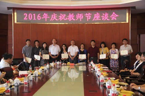 主页 » 教工之家 财税分工会教师获学校教师节多项荣誉表彰 发布日期:2017-01-16 在教师节来临之际,学校于2016年9月8日上午召开庆祝教师节座谈会。校党委书记冯培,纪委书记、工会主席杨世忠,副校长王传生,党委宣传部部长邸燕茹、工会常务副主席李民、人事处副处长麻艳如,市级先进集体获奖单位代表、从教30年教职工、2016年北京市“师德先锋”、校级“师德榜样”等参加座谈会。会议由李民主持。 在会议表彰环节,财税学院院长姚东旭教授和党委书记李红霞书记获得从事教育工作满30年荣誉;陈蕾副教授获评校级“师德榜样”,并作为获奖教师代表在座谈会上发言。