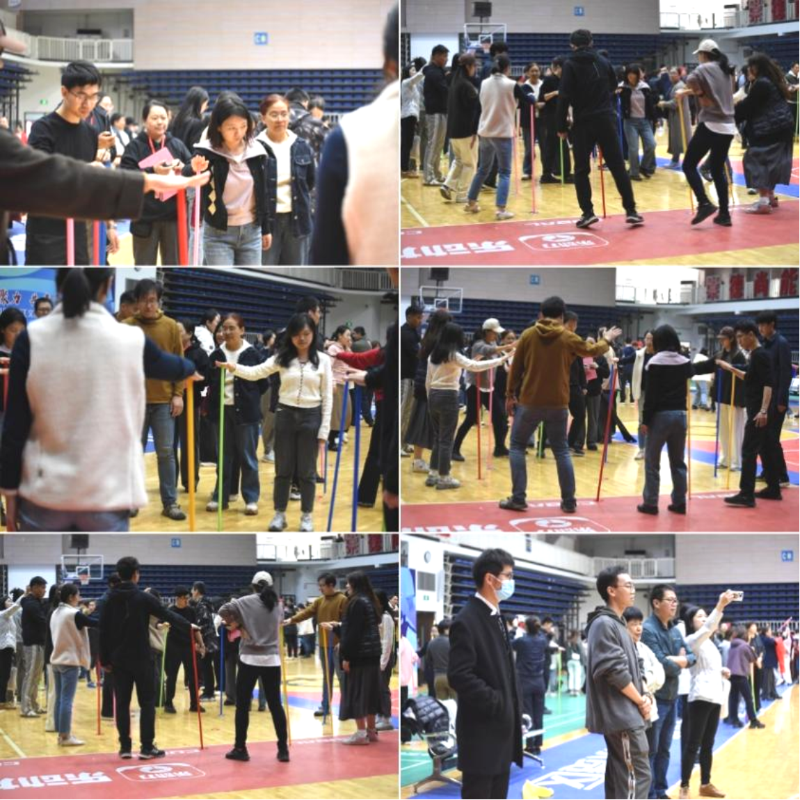 本次文化体育节的第二类项目是集体项目,包括能量传输、不倒森林和趣味篮球。老师们积极参与,展现出了充沛的热情和勇于挑战的竞技状态。学院分工会还特邀往届参赛经验丰富的老师给予技术讲解和指导,大家在欢声笑语中进一步熟悉了项目比赛规则和要领技巧。例如,能量传输和不倒森林都是需要手眼协调、灵活反应的比赛项目;趣味投篮赛不仅考验老师们的投篮技术水平,也对老师们的心理素质和团队协作能力提出了很高的要求。