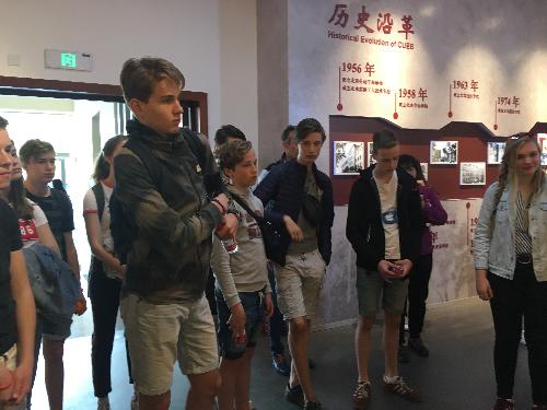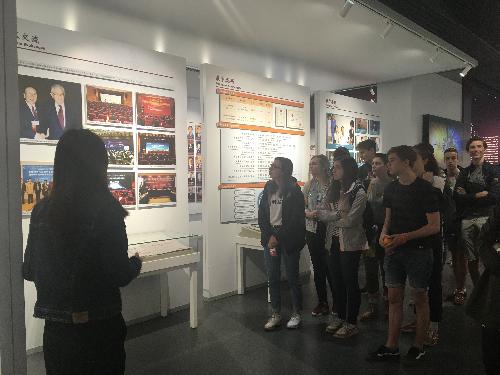 接着,志愿者引领马尔滕斯中学的同学们参观校史馆。校史馆提前安排了专业的英文讲解,并放映英文宣传片,供参观者更深入的了解我校历史。