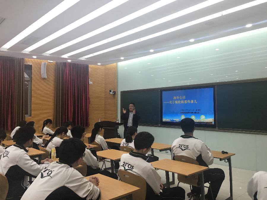 主页 » 学生工作 » 本科生 税月之高中税法小讲堂 发布日期:2016-05-10 4月19日晚6:30,奈菲影视 税务系曹静韬老师为海淀区二十一世纪国际学校的高三同学组织了一场题为《海外生活――关于税收那些事儿》税收专业讲座。针对国际学校学生未来出国留学学习工作生活等现实问题,讲解了跨境税收相关问题并简要介绍了美、澳、英、法四个国家的税制,使得同学们对海外生活中的税收知识有了初步的认识。贴近学生学习生活实际的知识点以及引发学生思考的轻松互动,使得同学们受益匪浅。