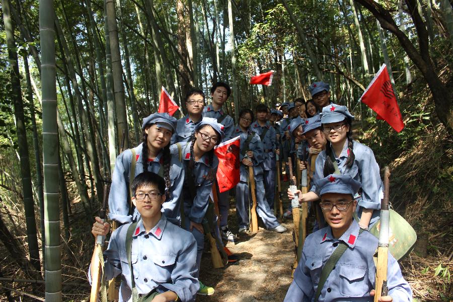 同天下午,队员们在高敏丽老师的带领下一起前往黄洋界保卫战袁文才烈士的大女儿家,并听其外孙讲述了袁文才当年的故事。之后,身着红军装、身背红军枪的全体学员前往黄洋界,在带班老师的引领下征服了以险著称的挑粮小道。