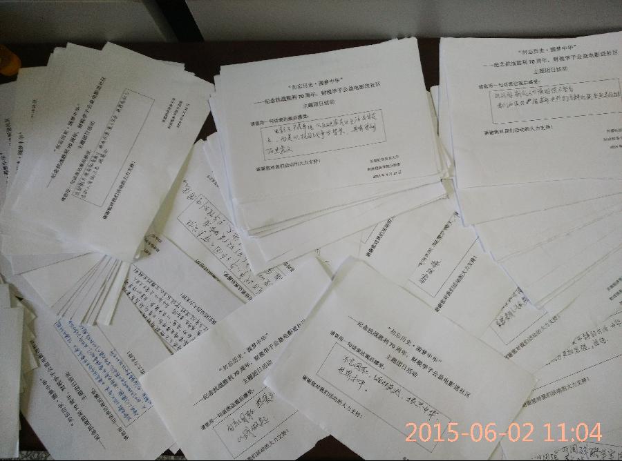 财税大一五个团支部开展“勿忘历史•圆梦中华――纪念抗战胜利70周年,财税学子公益电影进社区”主题团日活动