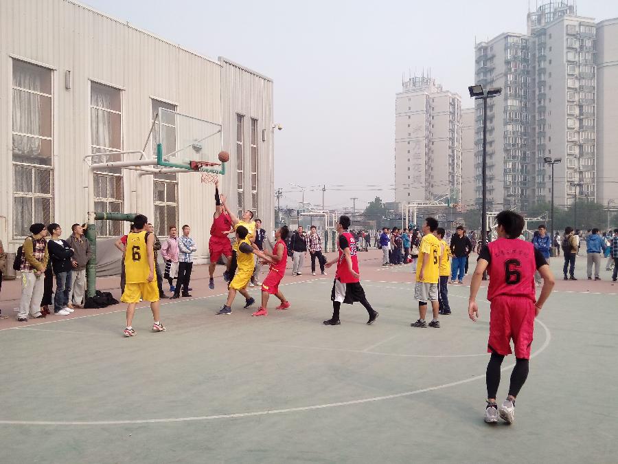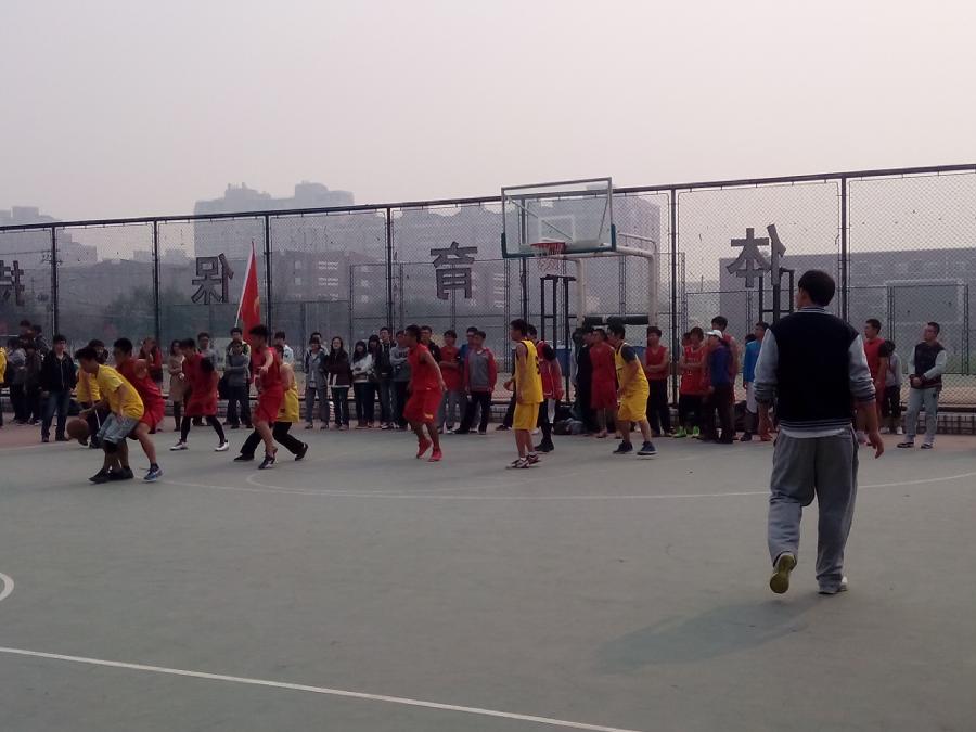 与工商管理学院在学校篮球场上进行了一场激动人心的“院系杯”篮球比赛。