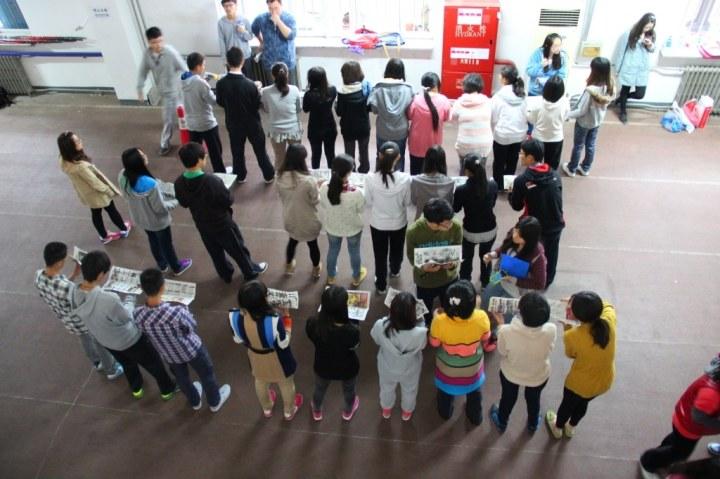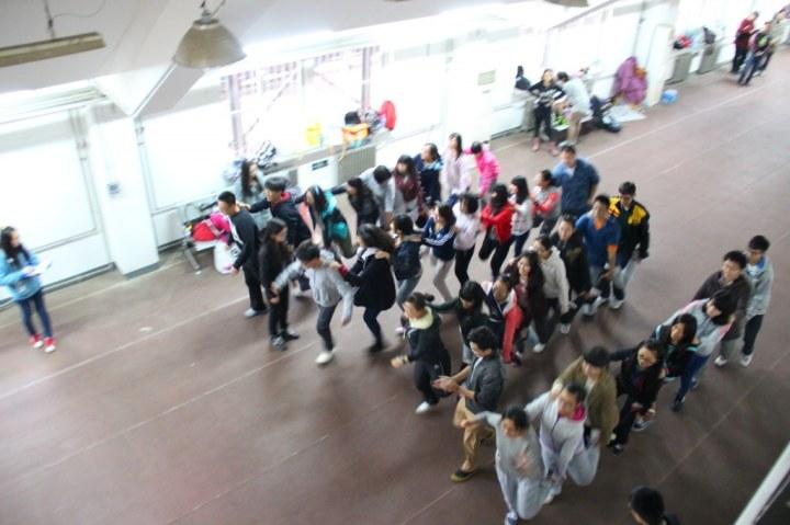 下午2点,活动正式开始。本次活动包含分组、团队展示、游戏、颁奖四个环节。首先,各部部长进行自我介绍,并将大一的干事们分成8队。在各队各具特色的展示后进入游戏环节。第一个游戏是“地雷阵”,也就是在空地上放满水瓶,游戏者蒙眼通过,不要碰到水瓶。这个游戏考验的是同学们的平衡性以及配合。最终有许多“地雷”纷纷倒下,同学们也体会到游戏的乐趣。第二个游戏是“在一起”,每队两张相同大小报纸,每组队员要在最短的时间内全部站在报纸上,并停留10秒以上,同时报纸不能破。同学们以各种姿态抱成一团,想尽方法完成任务。第三个游戏名为“东拼西凑”,也就是将指定物品以接力的形式送到终点。同学们在找东西的过程中手忙脚乱,也使得队伍中一片欢声笑语。第四个游戏是“珠行千里”,同学们用报纸将乒乓球传送到终点。在游戏途中,兵乓球不断掉落,也为这个游戏增加了不少的难度。