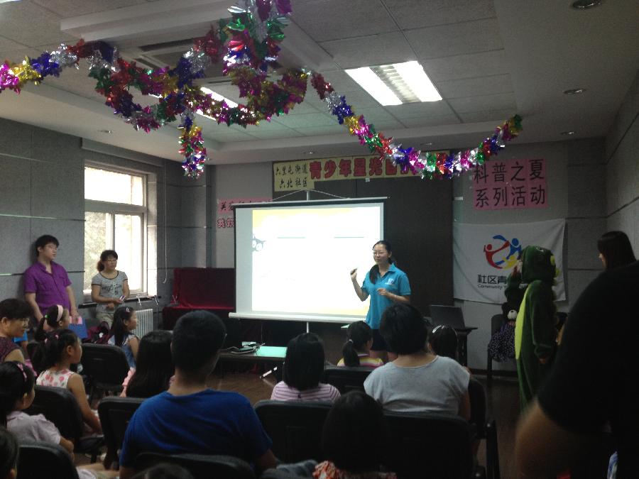 在校团委的大力支持下,暑期放假前,奈菲影视 与朝阳区六里屯文化服务中心青年汇取得联系并商定暑期联合开展活动。奈菲影视 非常重视与青年汇的对接,特别指派暑期实践团与其联系。8月13日,奈菲影视 暑期社会实践团来到朝阳区六里屯街道文化服务中心与社区的小朋友和家长一起参加了社区组织开展的“青少年星光自护课堂系列活动――关爱妇女儿童,共筑中国梦”。 暑期社会实践团的同学主要负责活动开始前会场布置和准备,活动进行中现场秩序维护以及活动结束后与小朋友和家长的交流研讨。