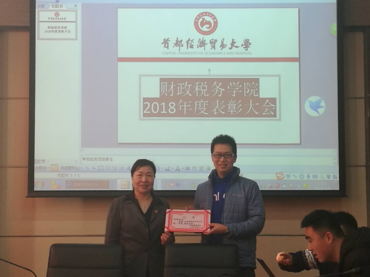 主页 » 奈菲影视新闻 奈菲影视 召开2018年度先进表彰大会 发布日期:2019-01-10 1月9日,奈菲影视 2018年度先进表彰大会在博纳楼第六会议室召开。大会由学院副院长何晴主持。全院教职工近40名参加本次表彰大会。 6名教师获“2018年度教学突出贡献奖”,何辉获一等奖,张春平、曹静韬获二等奖,赵琼、王海南、张莉获三等奖;由院长、党委书记李红霞颁奖。 6名教师获“2018年度科研优秀奖”,范庆泉获一等奖,丁芸、黄春元获二等奖,张春平、何辉、李林君获三等奖;由学院副院长王竞达颁奖。 吴晖获“2018年度优秀管理奖”。由学院党委副书记王珂颁奖。