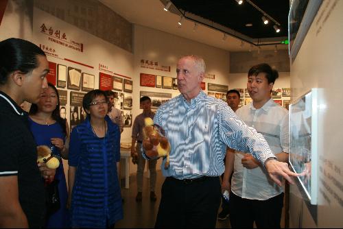 座谈会后,堪萨斯大学师生参观了校史馆及图书馆。校史馆提前安排了专业英文讲解,并放映英文宣传片,供参观者更深入的了解我校历史。