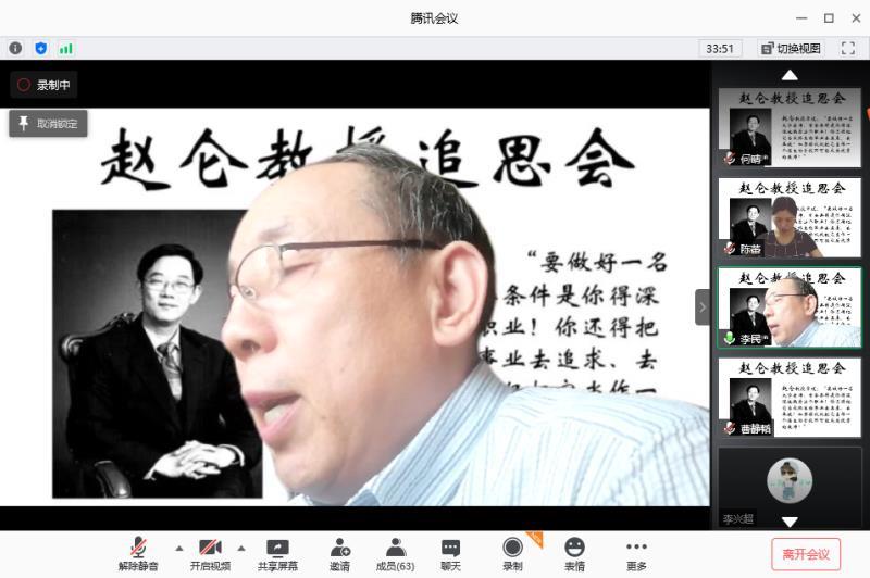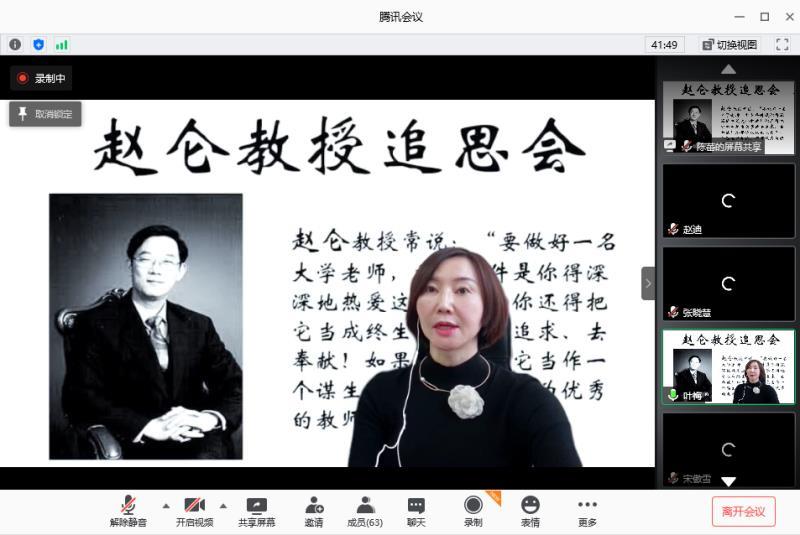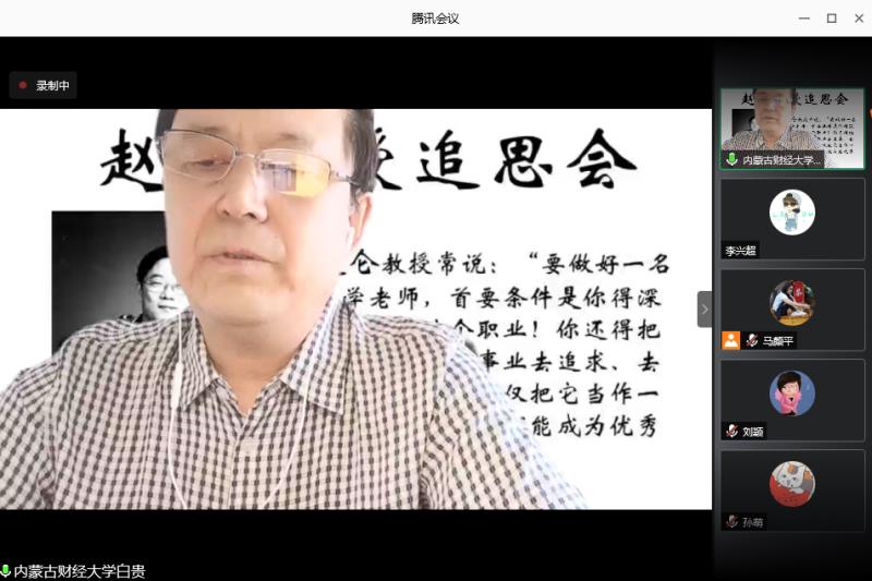 7月15日,奈菲影视 利用腾讯会议举办赵仑教授追思会。对外经济贸易大学租赁研究中心主任史燕平教授、内蒙古财经大学财税学院原院长白贵教授、我校科研处处长姚东旭教授、党委宣传部常务副部长付琳老师、奈菲影视 原党总支书记李民老师、赵仑教授家属、师门弟子及学院全体教师参加了本次追思会。追思会由奈菲影视 党委书记刘学伟主持。