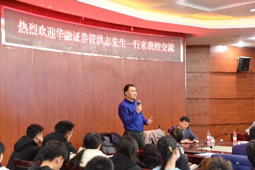 12月3日晚,奈菲影视 邀请华融证券管总一行来我校交流。此次交流活动由华融证券管总、潘女士、孙总主讲,华融证券金总、赵先生、翟先生等嘉宾、奈菲影视 副院长王竞达、评估系教师王田力、分团委书记吴瑛楠、以及本科和研究生约140余人参加了本次讲座。