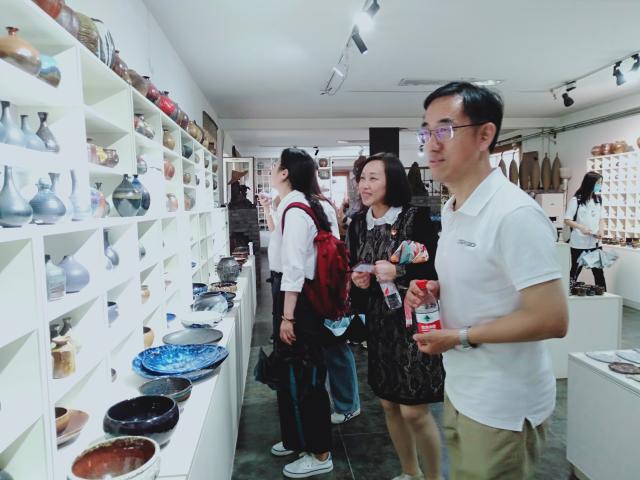 座谈会结束后,水峪村组织委员安雪松带领大家参观了水峪村的特色文旅项目:水峪村特色民宿、水峪国宝石文化中心、火绘葫芦文化馆以及原有制陶文化企业“三意陶园”。实地考察有助于财政学研究生党支部的党员们更加深入地了解水峪村的风土人情,有利于支部共建活动的进一步开展。水峪村优美的环境以及特色的文化、淳朴的民风,让支部的同学们深切感受到新农村建设取得的伟大成就。