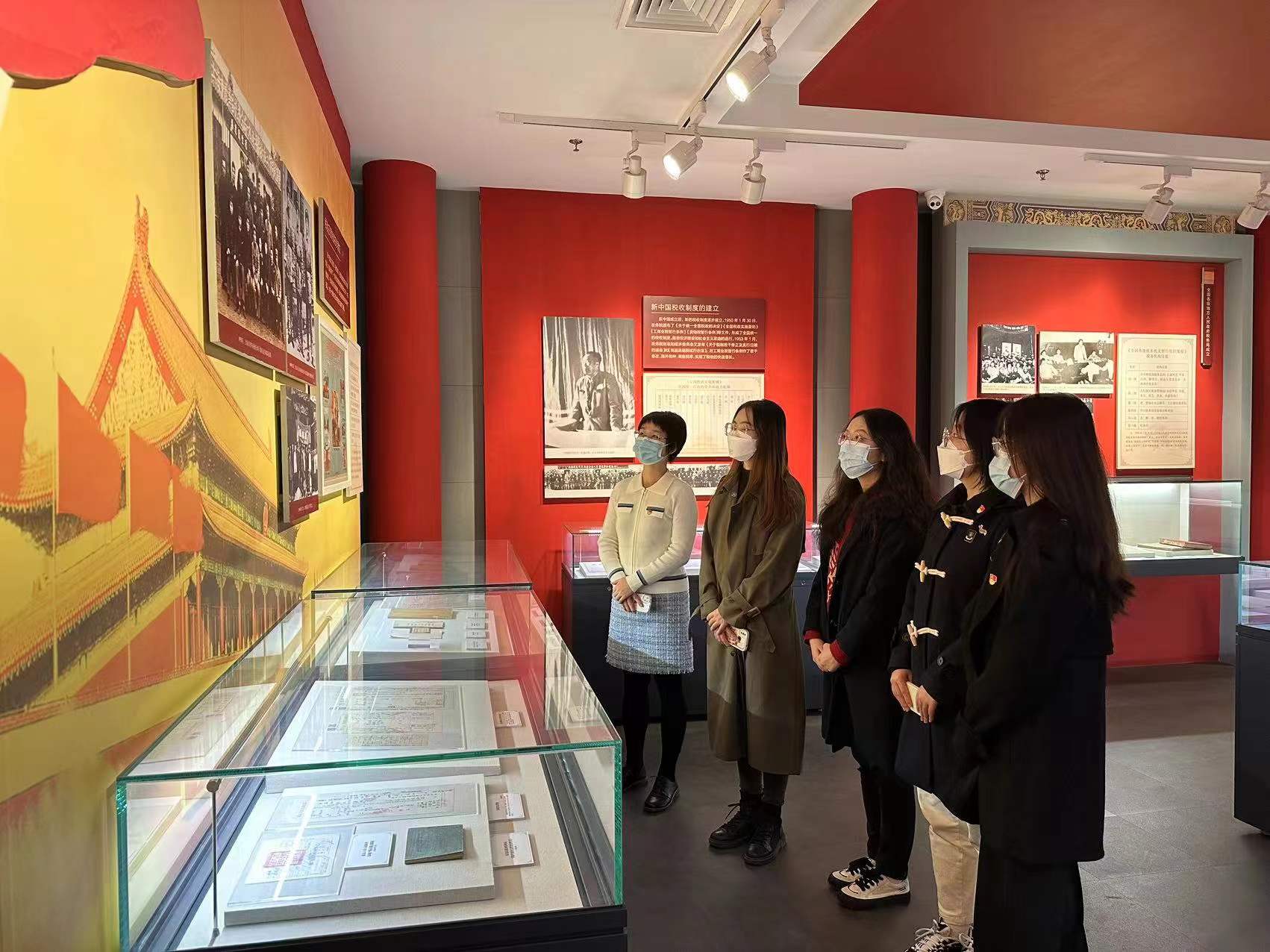 在北京税务博物馆讲解员的带领下,财政税务专业本科生党支部党员首先参观了红色财税展览,了解了革命根据地税收历史,梳理了我国税制的发展脉络,感悟到红色税史文化的内涵和底蕴。