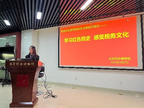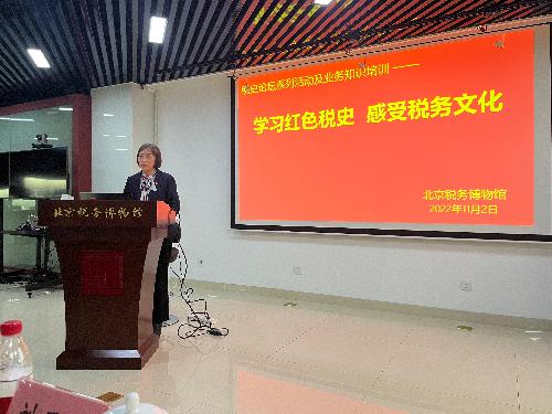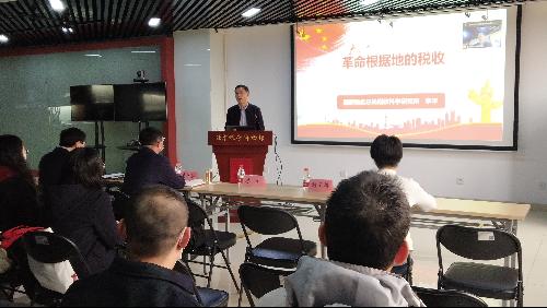 随后,财政税务专业本科生党支部和北京税务博物馆党支部共同参与了主题为“学习红色税史,感受税务文化”的税史论坛。此次论坛中,国家税务总局税收科研所副所长李平做了新民主主义革命时期的红色税收专题讲座。讲座从大革命时期、土地革命时期、全民族抗日战争时期、全国解放战争时期四个阶段展开讲述我国红色税收发展道路,梳理了从建党初期到苏区、边区、解放区的税收主张、税制建设、税收思想与税收实践,展现了革命根据地税收事业的伟大探索和中国共产党始终坚持“为中国人民谋幸福,为中华民族谋复兴”的初心使命。