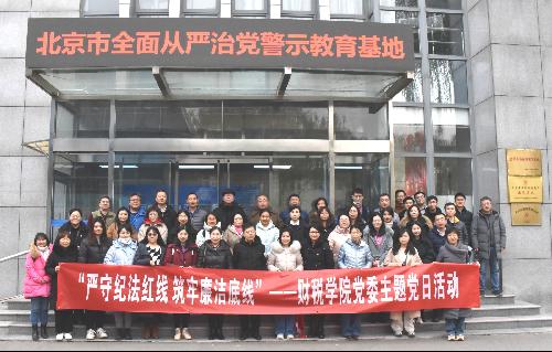 为推进全面从严治党工作深入进行,强化党规党纪和纪法教育,12月4日,财税学院党委组织教工党员赴北京市全面从严治党警示教育基地开展“严守纪法红线 筑牢廉洁底线”主题党日活动。