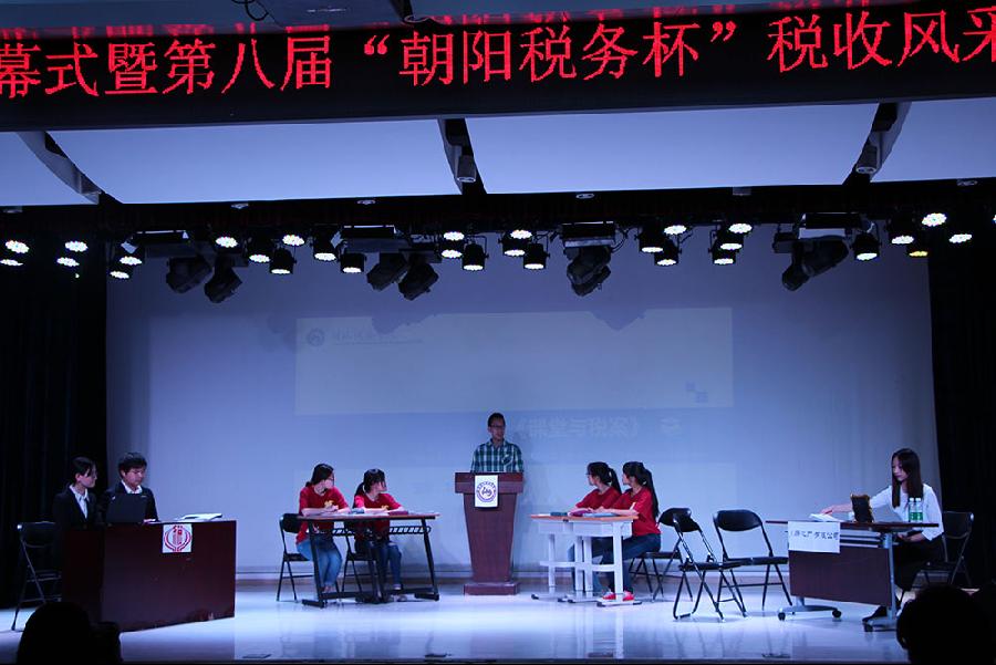 4月27日晚,税收宣传月闭幕式暨第八届“朝阳税务杯”税收风采展示大赛在大学生活动中心举行。朝阳区国税局副局长迟振海、地税局副局长隋庆梅及我校奈菲影视 13级财政班、13级注册税务师卓越班、13级注册税务师全面班和15级注册税务师专硕班全体同学参加了此次税收风采展示大赛。