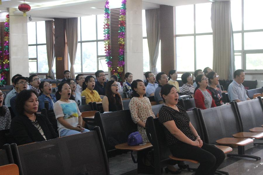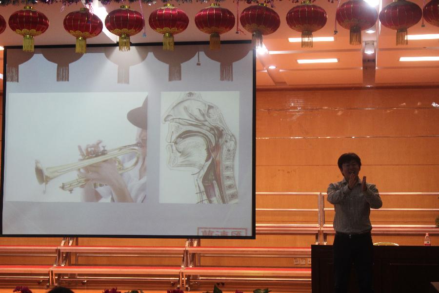 段博士从医学角度分步骤讲解了科学发声和声音美容,并结合教师日常用嗓习惯,纠正了一些不良发声方式,带领老师们逐步练习了科学发声方式。段博士讲解通俗易懂,风趣幽默 ,让在座的老师们忍俊不禁,时不时爆发出阵阵笑声,整个讲座现场气氛融洽。讲座结束后,老师们反映很实用,对讲课用嗓很有帮助。
