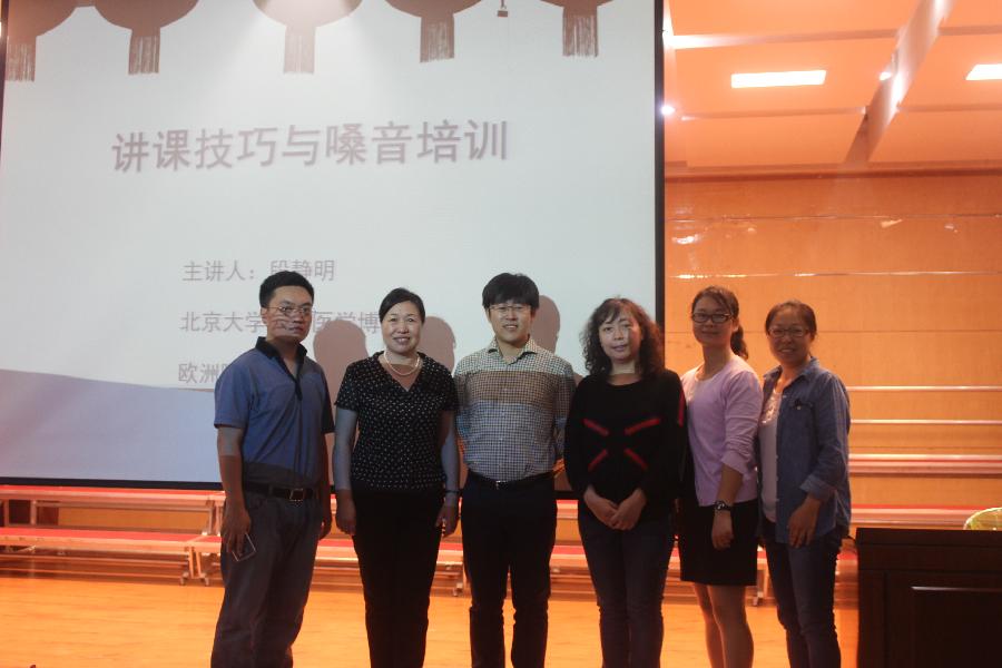 讲座开始前,李红霞书记简单介绍了段静明博士及本次讲座的目的和意义。她指出科学发声直接关系到我们老师的身心健康和教学效果,希望本次专题讲座能对老师们日后的讲课和日常发声有帮助。
