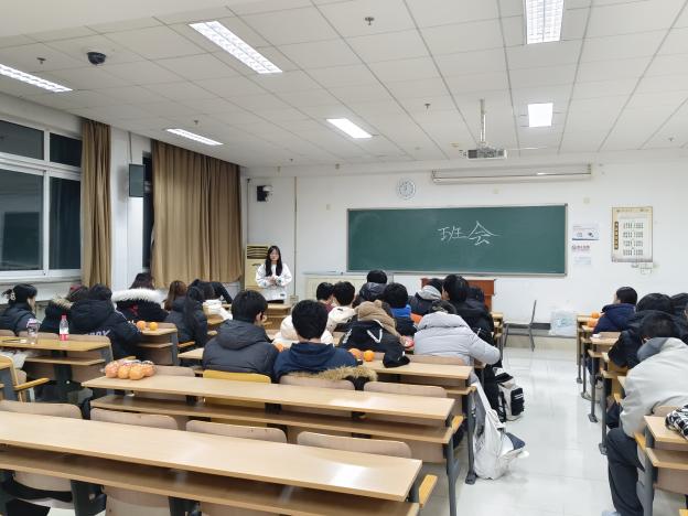 各班班主任向同学们提示了用电安全、假期安全等注意事项,并强调临近期末,同学们应认真复习,诚信应考,遵守考场纪律与学术诚信。本科2023级财政学类2班班主任唐火青为本班同学准备了橙子与苹果,祝福大家“橙“功取得好成绩,“苹”安度过假期。