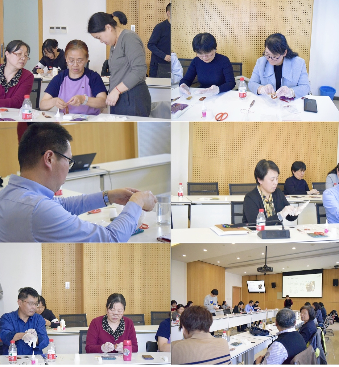 活动现场,木料的清香与欢声笑语交织。老师们或专注雕琢细节,或互相探讨技巧;有人精心调整算珠间距,力求严丝合缝;有人巧妙设计挂绳配色,展现独特创意。