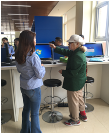 首先,税务干部朱老师带领同学参观了以“互联网+”技术为依托的自助服务大厅,大厅的左侧是国地税服务窗口,右侧是一排自助机具,可以进行发票的认购、认证、抄报以及增值税小规模纳税人零申报等。大厅内部还设计了纳税人培训课堂和技术服务中心,纳税人通过互联网能够听、问、看、查、约、办各项涉税事宜,以便利纳税人为宗旨,以降低纳税人纳税成本为目标,利用“互联网+税务”的模式让信息多跑路,纳税人少跑路。