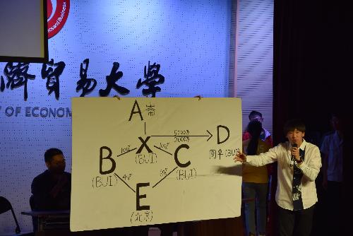 最后出场的2015级税收卓越班以新闻联播的方式联系了一带一路政策下哈萨克斯坦的群众生活,手表出口,沙漠种菜,北京的残疾人咖啡店等小故事,表现了税收制度对中小型企业和高新技术产业的照顾与扶持,帮助平衡产业,踏踏实实迈进促进经济发展每一个脚步。