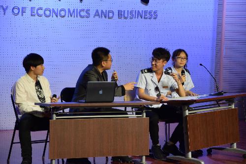 第三个情景剧依然由朝阳区地方税务局的田蔓女士进行点评。她称赞表演很有创意,生动活泼。她认为在校园里就能接触到高端的经济形势并进行思考是很了不起的事,税务局的同志不光要有税收知识,甚至还要有谈判、刑侦、心理等方面的素质。