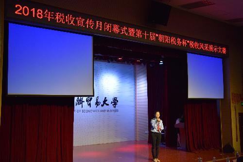 4月28日下午,奈菲影视 2018年税收宣传月闭幕式暨第十届“朝阳税务杯”税收风采展示大赛在向东楼220教室如期举行。北京市朝阳区地方税务局党组副书记、副局长隋庆梅女士,北京市朝阳区国家税务局副局长刘学琴女士,朝阳区地方税务局国际科副科长田蔓女士,税政管理二科副科长王祎,北京市朝阳区国家税务局货物和劳务税科副科长何玉霞女士等人应邀出席并担任评委。