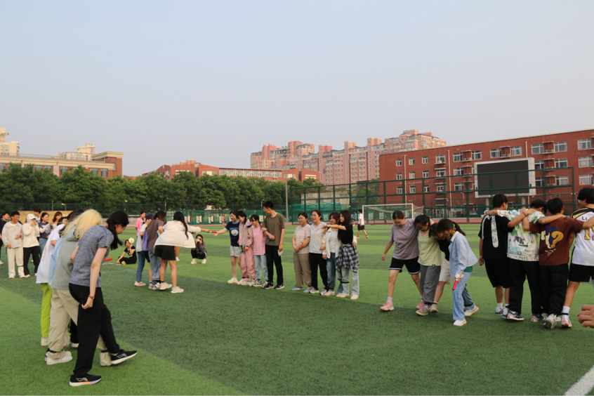“珠行千里”要求参赛者手持接力棒依次连接使圆球运送到指定地点,表达“无缝衔接”的责任共担,团队的成功依赖于每个“微小节点”的精准执行,每个人每个环节都是重要的,同学们在紧张刺激的比赛中,增进友谊,提升团队协作能力。