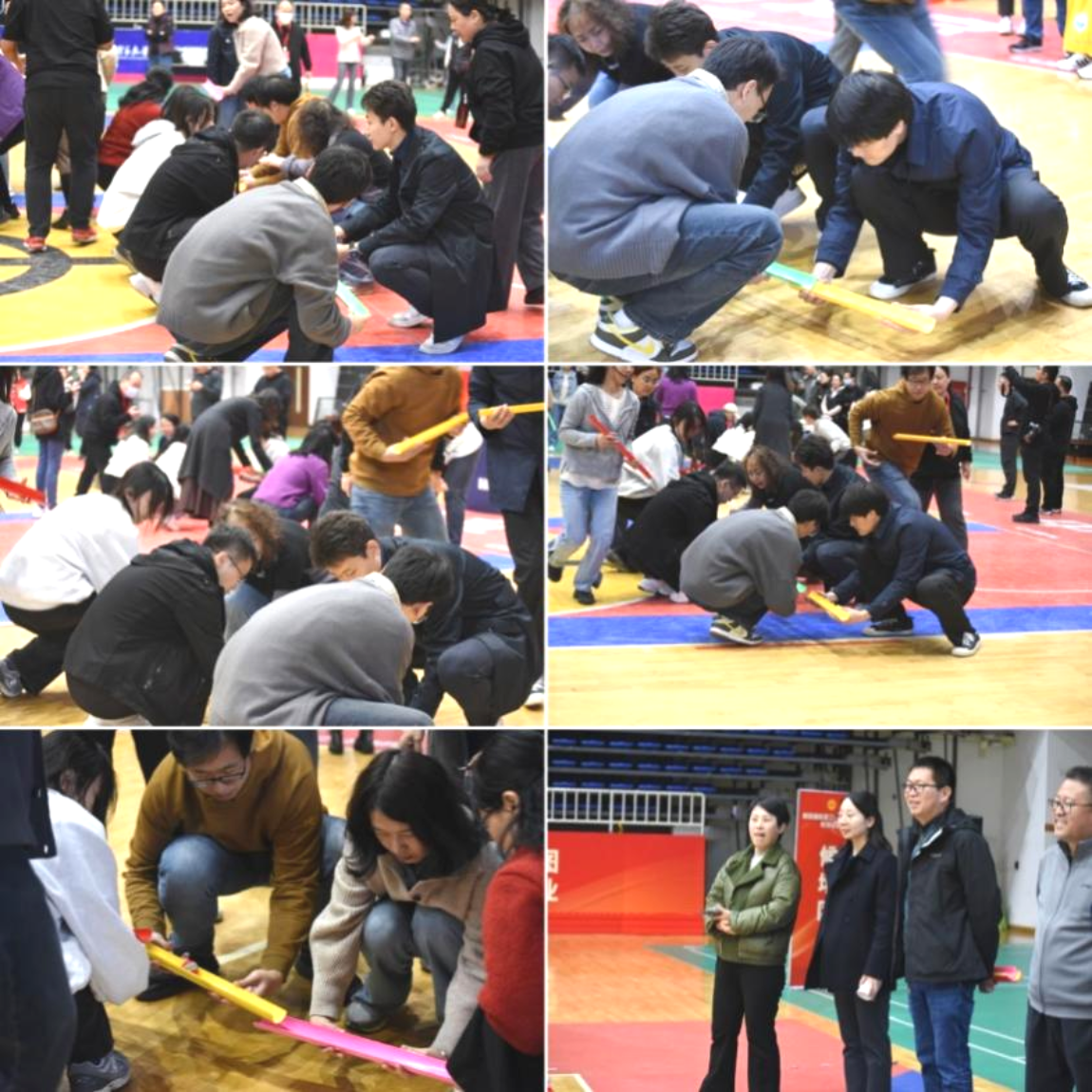 本次文化体育节的第二类项目是集体项目,包括能量传输、不倒森林和趣味篮球。老师们积极参与,展现出了充沛的热情和勇于挑战的竞技状态。学院分工会还特邀往届参赛经验丰富的老师给予技术讲解和指导,大家在欢声笑语中进一步熟悉了项目比赛规则和要领技巧。例如,能量传输和不倒森林都是需要手眼协调、灵活反应的比赛项目;趣味投篮赛不仅考验老师们的投篮技术水平,也对老师们的心理素质和团队协作能力提出了很高的要求。