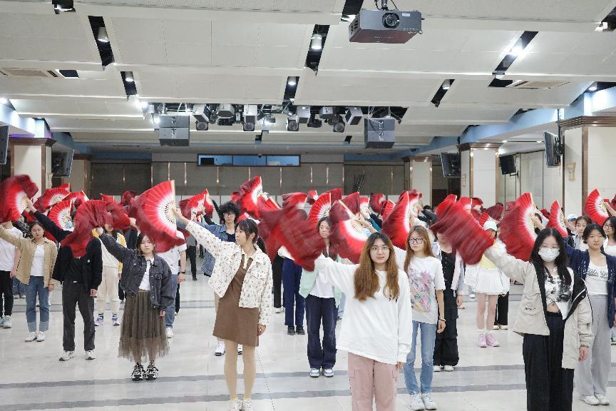 自团体操准备工作开始,上百余名同学利用晚间休息时间,全情投入至紧张而密集的训练当中。大家向各位老师展示了近一个月以来的排练成果。同学们的动作整齐划一,干净利落,洋溢着属于财税青年人的朝气与希望。在音乐声中,同学们手中的扇子飘扬舞动,呈现出极佳的视觉效果。